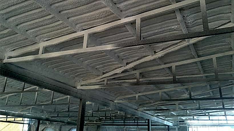 Azerbaycan'da popüler sprey poliüretan köpük, trapez sac yüzeylerde su sızıntılarını önler.